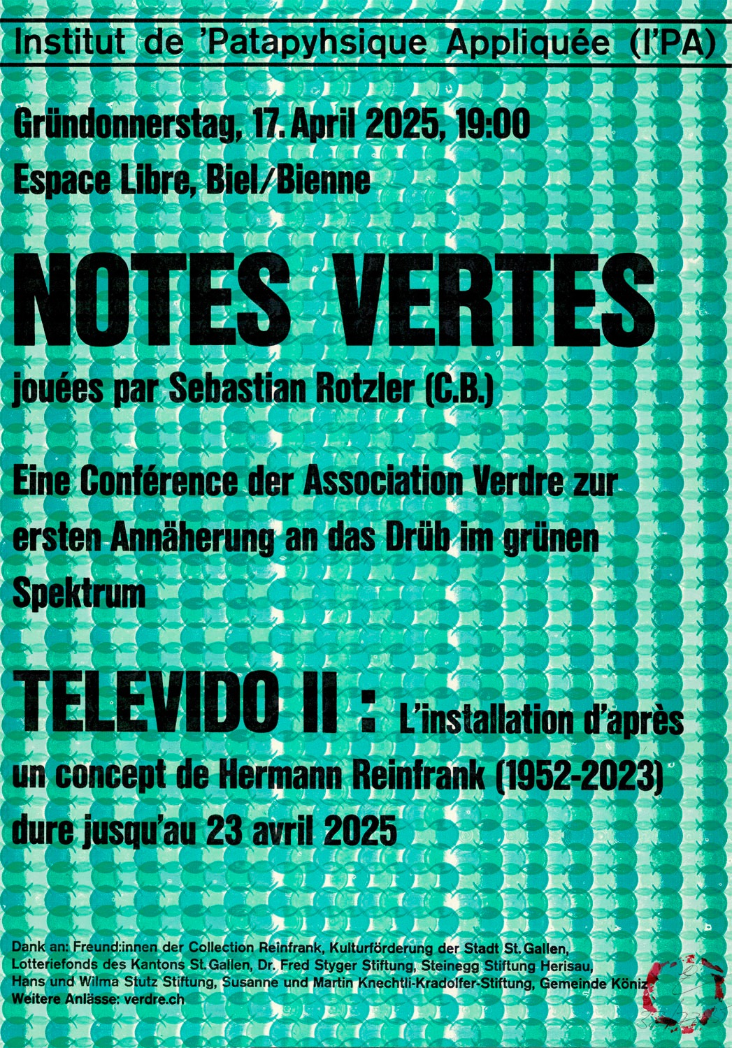 Die Association Verdre beginnt die 2. Runde der Präsentationen zur Aufarbeitung, Erforschung und Vermittlung des Nachlasses von Hermann Reinfrank (1952–2023) mit einer Weiterentwicklung der Installation TELEVIDO, die der Künstler 2005 für den Ausstellungsraum Katharinen, St.Gallen konzipierte. «Die Ausstellung ist überraschend reduziert», schrieb Ursula Badrutt Schoch damals im St.Galler Tagblatt mit Bezug auf die bei Reinfrank oft anzutreffende Materialfülle. Den Artikel betitelte sie mit «Nahsicht aufs Fernsehen».